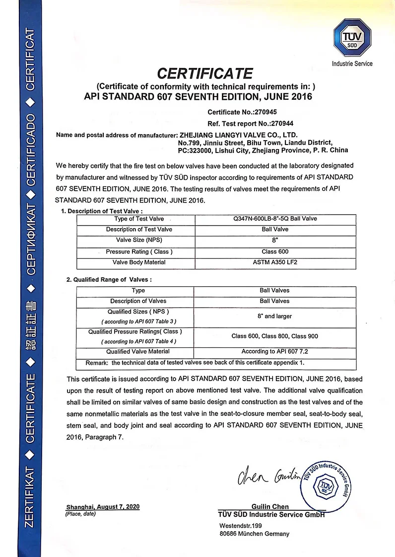 During before years, our product certified by ISO 9001, API 6D, API 607, CE and other international product certification. And we still strive to gain more